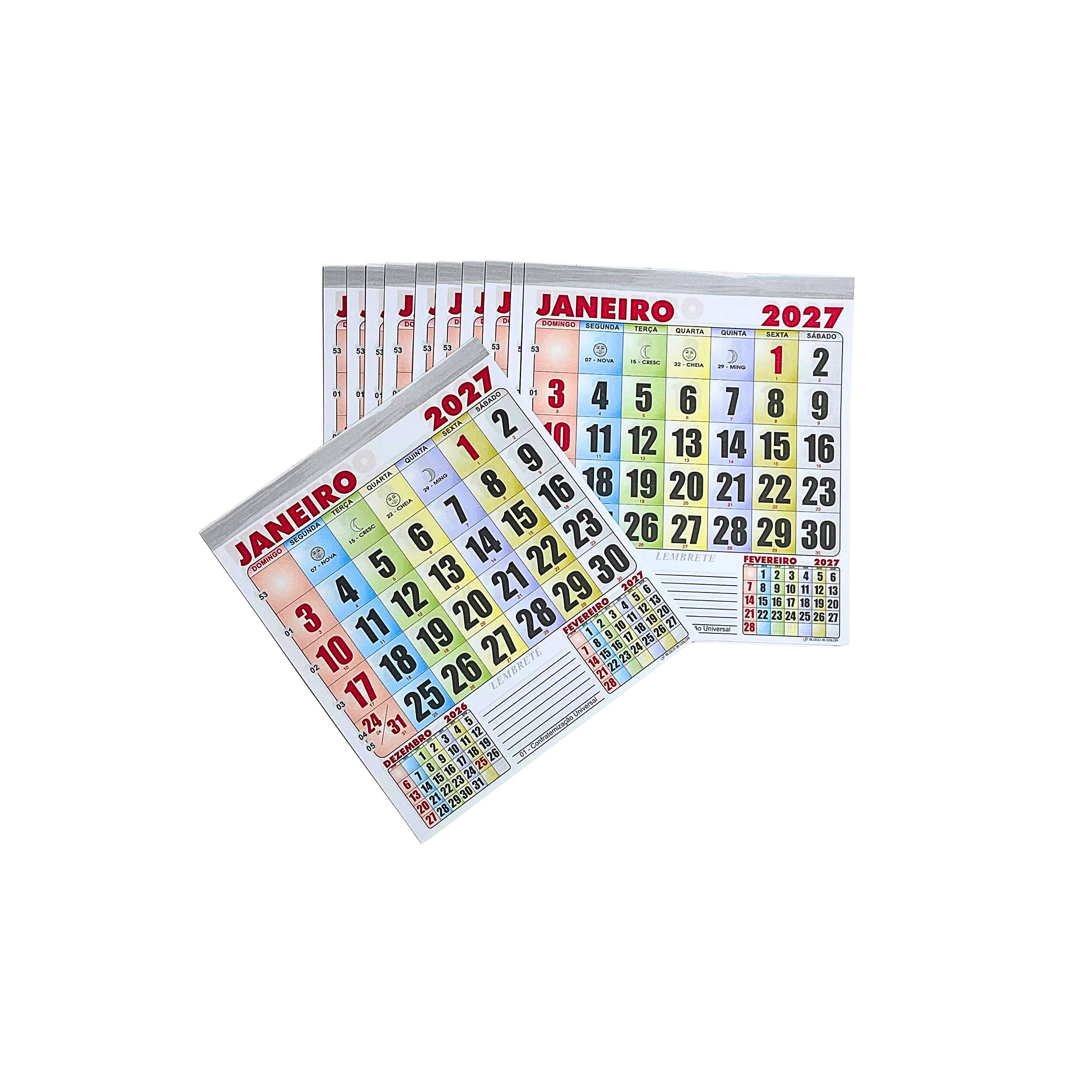 100 JOGOS DE CALENDÁRIOS 2027 DE BLOCO PARA FOLHINHA DE PAREDE COMERCIAL REFIL COLORIDO - 14,5 X 16 CM