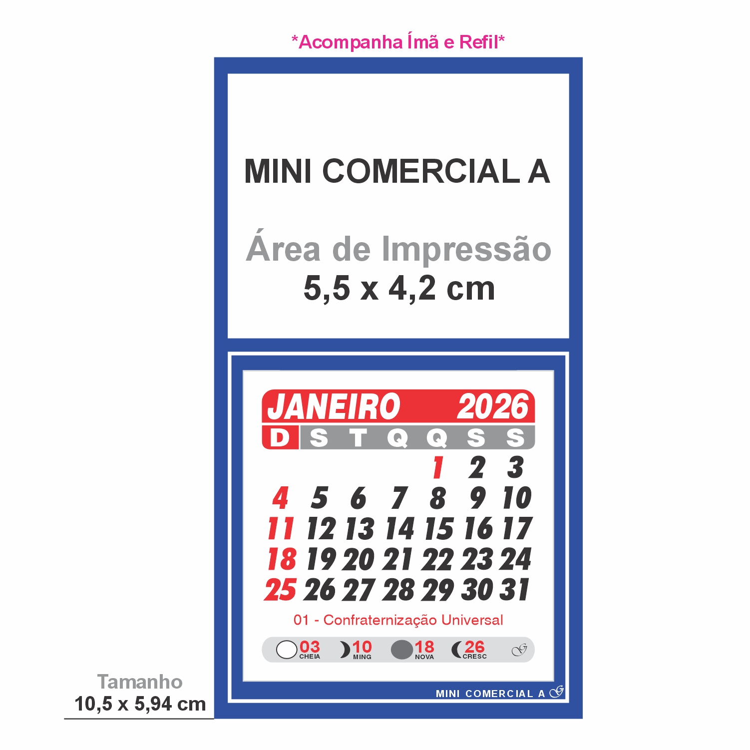 - MEDIDA DO CALENDÁRIO MONTADO 6 X 10,5 CM